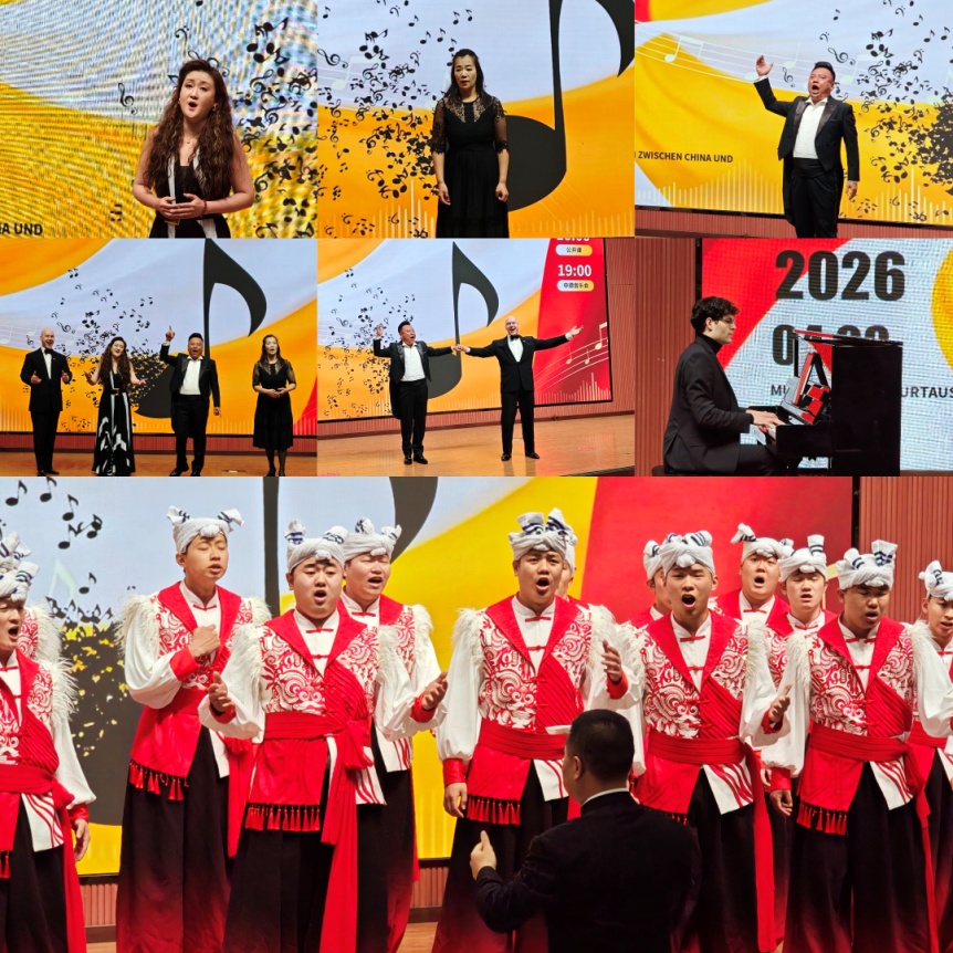 4月8日,由我校国际合作与交流处、音乐系联合举办的中德音乐交流活动在鄠邑校区弘石报告厅圆满举行。德国德中友好协会联合会副会长、德国美因茨威斯巴登德中友好协会名誉会长卡斯特,德国美因茨威斯巴登德中友好协会副会长祝亚波,德国德中国际文化交流总会副会长王玉斌,副校长赵健出席本次活动。 公开课环节,德国男高音歌唱家施莱格与艺术指导鲍姆在音乐系合唱教室,与我校师生面对面交流声乐技巧,分享德奥艺术歌曲的演绎风格,现场互动氛围热烈。 音乐会开始前,赵健副校长亲切接见了卡斯特先生。在致辞中,赵健副校长对德国音乐家一行的到访表示热烈欢迎,充分肯定文化交流在增进中德友谊、促进文明互鉴中的重要作用,并对本次中德音乐交流活动寄予美好期许。 音乐会上半场,施莱格与鲍姆联袂演绎《我心爱的宝贝》《至崇高的爱》《环顾四周》《这张脸庞如此迷人》《一缕温柔的爱》等莫扎特经典歌剧选段,尽显德奥歌剧的辉煌气势与细腻情感。随后,我校音乐系教师朱玥、刘奕彤、程辉依次演唱马勒《不要因美丽而爱我》、莫扎特《我感到》及意大利名曲《负心人》,精湛的演唱技艺赢得现场观众阵阵掌声。 音乐会下半场,施莱格与鲍姆带来《温柔的梦》《去吧,幸运的玫瑰》等五首贝利尼艺术歌曲,完美展现意大利艺术歌曲的浪漫与深情。紧接着,我校男声合唱团在李强教授指挥下,演唱改编自陕北民歌的《神仙挡不住人想人》《可想你哩》,苍凉炽热的信天游旋律与黄河岸边的深情咏叹,深深打动现场每一位观众。 音乐会尾声,施莱格现场学习并演唱中国民歌《茉莉花》,与中方艺术家携手呈现这首经典“音乐之花”。最后的返场曲目《今夜无人入睡》将整场音乐会氛围推向最高潮。 本次音乐会是继 2024年罗伯特・舒曼艺术歌曲专场、2025年德国美因茨音乐学院文化友谊音乐会后,双方联袂打造的第三次高水平艺术交流盛会。活动以音乐为桥、以文化为媒,既传承中德友谊、深化人文互信,又推动双方在艺术理念、教学实践与创作表达上深度互鉴、协同创新,为学校国际化办学与校园文化建设书写了厚重而精彩的艺术篇章。 文:鱼紫薇 图:刘玺 编辑:刘玺 审核:宋振涛、张帆