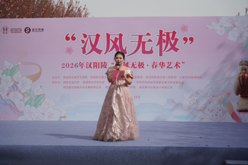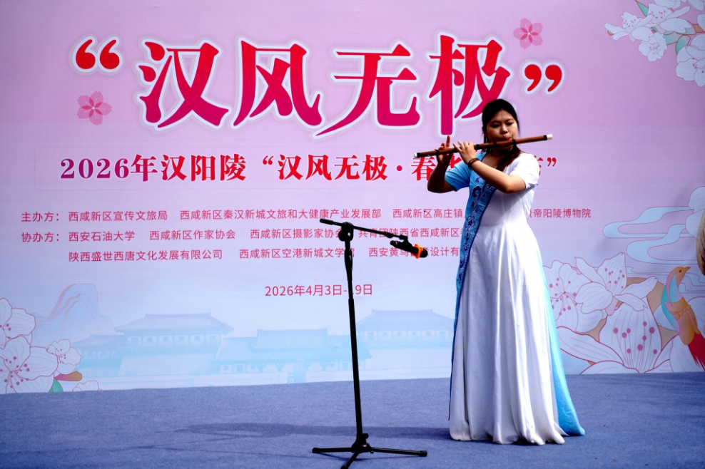 4月3日上午,2026年“汉风无极”春华艺术展演系列活动在汉景帝阳陵博物院樱花林正式开幕。我校作为协办单位,选派师生民乐团亮相开幕式文艺展演。校党委委员、党委宣传部部长赵承胜,党委宣传部、后勤处、音乐系相关负责人参加活动。 本次活动由西咸新区宣传文旅局、西咸新区秦汉新城文旅和大健康产业发展部、西咸新区高庄镇人民政府、汉景帝阳陵博物院联合主办,我校与西咸新区作家协会、摄影家协会等单位共同协办。来自相关高校、文艺团体及周边社区的300余名演职人员参与本次展演。 开幕式上,我校师生带来专场民乐演出,古筝、竹笛、琵琶、二胡等传统乐器次第奏响,精彩演绎《新编十面埋伏》《云宫迅音》《姑苏行》《扬鞭催马运粮忙》《塞上曲》《赛马》《高山流水》《太极琴侠》《胡旋舞》《我的祖国》等经典曲目。演出穿插《子衿》《桃夭》诗歌朗诵,以古韵新声礼赞春日芳华,在声韵流转间彰显中华优秀传统文化的深厚底蕴。整场演出曲目丰富、风格多样,既饱含传统经典的深沉悠远,又兼具现代作品的昂扬气势,充分展现了我校师生扎实的专业功底与朝气蓬勃的精神风貌,丝竹雅韵赢得现场观众阵阵掌声。 近年来,学校高度重视美育育人工作,积极推动中华优秀传统文化创造性转化、创新性发展,引导师生走出校园、服务社会,在文化传承与艺术实践中锤炼本领、提升素养。此次参演“汉风无极”春华艺术展演,既是学校美育成果的集中展示,也是校地协同、文旅融合的生动实践。 据悉,本届艺术展演系列活动将持续至4月19日。我校将以此为契机,持续深化与地方文化机构的交流合作,不断拓展艺术实践平台,引领青年学子在传承中华文脉中坚定文化自信,在服务地方发展中贡献青春力量。 文字:党立 图片:王渊 编辑:刘玺 审核:孙琳
